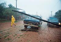 “La casa empezó a caerse encima nuestro y nos tuvimos que refugiar con mi familia abajo de la mesa”, relata Juan Márquez a Página/12. Ayer, debajo de la lluvia, Márquez miraba con impotencia los restos de la que fue su casa. Es uno de los 5 mil damnificados de la ciudad misionera de Puerto Esperanza, ubicada a 270 kilómetros al norte de Posadas, donde el martes por la noche un tornado con lluvia, granizo y vientos huracanados de más de 100 kilómetros por hora provocó, en cinco minutos, voladuras de techos de 1500 viviendas, caída de postes del tendido eléctrico y de teléfono y centenares de árboles caídos. Pese al desastre, no hubo víctimas.