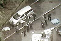 Las ventanas de la furgoneta habían sido selladas herméticamente desde el interior con cinta de vinilo y las del otro vehículo, con cinta plástica negra, mientras que el exterior de los dos automóviles estaba cubierto con enormes plásticos azules.