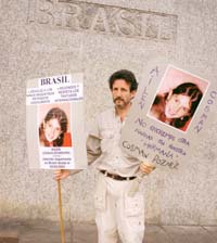 Su ex esposa, Graciela Scandurra, es arquitecta, al igual que él, y escultora. Se separaron cuando la nena tenía 4 años. Tienen otro hijo, de 15, cuya tenencia quedó a cargo de Cosmán. El es quien a la noche le va a traer una campera, una bolsa de dormir y mate. “Soy muy matero”, se alegra el hombre, dispuesto a pasar su primera noche frente al edificio que en sus formas tiene un parecido notable con un estadio de fútbol. La gente que pasa por Cerrito mira de refilón a Cosmán, que por nada del mundo suelta los carteles en los que pide por su hija, presente en la foto. Ella está en Curitiba. Para él, sentarse sobre un cantero brasileño es estar más cerca.