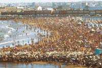 El fin de semana había alojadas unas 390 mil personas. En la primera quincena llegaron un 17 por ciento más de autos que el año pasado. Y en el centro hacen cola para tomar sol.