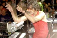 Este fin de semana la ciudad tiene las playas y las camas llenas de turistas. Por si fuera poco, lo trajeron a papá Charly García, que en el escenario del GAP, en la avenida Constitución, ofreció un show lleno de electricidad, excentricidades y excelencias, como cada vez. Con lleno total y con estrictas medidas de seguridad post Cromañón, lo de Charly fue un verdadero aterrizaje en Mar del Plata. Vino en avión, pero además se arrojó frente a la puerta del GAP en un vuelo más corto que aquel del famoso “me tiré por vos”. En vez de bajar por la puerta, saltó hacia la calle por una ventanita del micro-casa rodante que lo trajo y clavó las dos rodillas sobre el asfalto. Tal vez fue por eso que, para ocultar sus piernas ensangrentadas y para evitar la presión del pantalón, Charly salió al ruedo, dos horas después de lo previsto, con un vestido rojo de mujer audaz, con la espalda al descubierto y un tajo interminable. Hubo tiempo para tocar, para romper un parlante y la cámara pocket de un seguidor, para insultos y ovaciones. Bien a lo Charly.