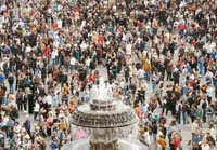 “No vengan todos juntos”, ruega a los fieles en un curioso comunicado el prefecto de Roma, Achille Serra, alarmado por la gran afluencia que, según las previsiones, llegará a reunir en el Vaticano a más de dos millones de personas en los próximos días. A Serra le preocupa que cuando hoy, a las 5 de la tarde hora romana, las puertas de San Pedro se abran a la multitud, para permitir que los creyentes den su último saludo al cuerpo embalsamado de Juan Pablo II, la situación se descontrole. Pero no explica cómo piensa llevar a la práctica su recomendación. “¿Qué pensará hacer? –se pregunta un periodista, cansado de tantas horas de tensión y espera–; ¿decirle a la gente que llegue por orden alfabético? Los que tienen apellido que comienzan con M de las 4 a las 5, los que empiezan con N de las 5 a las 6.”