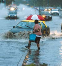 “No hubo mayores dificultades. Sólo tuvimos un anegamiento en la calle Necochea, en La Boca, y otro en Libertador y Campos Salles, donde hubo un desborde cloacal y pluvial, pero no se produjeron inconvenientes en lugares siempre afectados por inundaciones, como Belgrano, en la cuenca del arroyo Vega”, aseguró Feletti. El jefe de Gobierno, Aníbal Ibarra, sostuvo que la infraestructura de la ciudad “respondió muy bien” ante una lluvia “fenomenal”. Defensa Civil recibió 300 reclamos por obstrucción de sumideros, sobre el total de 30.300 que hay en toda la ciudad, mientras que dejaron de funcionar 30 de los 3500 semáforos que tiene la Capital Federal. El Servicio Meteorológico Nacional precisó que hasta las 16 de ayer habían caído 103,5 milímetros de agua por metro cuadrado. El temporal produjo un descenso de la temperatura que se hará más evidente hoy, dado que se espera una mínima de 8 grados.