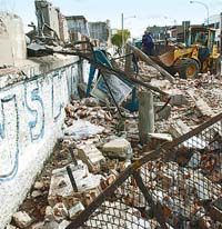 “Romina era una compañera de trabajo. Estaba esperando el 179 y nadie se dio cuenta de lo que le había pasado. Debe haber muerto a eso de las siete y media de la tarde. La encontraron los bomberos cerca de las cuatro de la mañana.” Carlos conoció a Romina en una fábrica de zapatillas que está en la calle Yatay, a dos cuadras del lugar del accidente. La endeblez del muro había sido advertida, hace dos meses, por la revista El Puente, de Valentín Alsina. Voceros de la Municipalidad de Lanús aseguraron que habían ordenado a la empresa Raisin SA, actual propietaria de lo que fue la planta de Campomar, que apuntalara el paredón.
