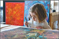 Alguien podría pensar que es la gallina de los huevos de oro. O más bien, el pollito, considerando su tamaño. Lo cierto es que con sólo cinco años, Marla Olmstead ha producido ya decenas de pinturas cuyos precios llegan hasta los 25.000 dólares. Convertida en un fenómeno de prensa mundial en 2004, después de una nota en The New York Times, la fama de Marla trepó junto al precio de sus obras. Hubo quienes pusieron en cuestión su real calidad artística y otros que dudaron de algo más básico: que efectivamente fuera ella quien las hiciera. Para espantar esos rumores, una galería de Binghamton, Nueva York, mostró durante julio y agosto una película donde se ve a la nena pintando una de sus obras de principio a fin. “Hay escépticos que creen que el arte de Marla es demasiado complicado para una persona de su edad –dijo Mark Olmstead, su padre, a Página/12–. La película muestra sus capacidades.” En su sitio de Internet también son visibles las dotes artísticas de la nena y las empresariales de su familia: allí no sólo se venden los originales sino también ediciones limitadas de 250 reproducciones que Marla firma una por una: toda una máquina de hacer dinero que da un cierto escozor mirar.