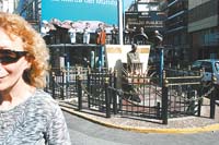 Pugliese está frente al piano, con traje blanco, moño negro y el característico clavel rojo sobre las teclas. A su lado, el cantor Adrián Guida con Abel Córdoba y el bandoneonista Ruggero, más otros cuatro artistas. A plena luz del día, los curiosos se acercan para sacar fotos y, de paso, relatar una pequeña parte de la historia.