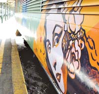 Los dos vagones del Expreso del Arte, donados por la empresa concesionaria del ferrocarril Belgrano Sur y especialmente reciclados y acondicionados para instalar una pequeña sala de cine y otra de teatro, descansan sobre las vías del andén tres de la estación Buenos Aires, en Barracas. Los pasajeros que descienden allí ven con asombro los vagones pintados con los más variados colores. Uno está decorado en su exterior con las caras de Alberto Olmedo, Niní Marshall, Tita Merello y Tato Bores. El otro, con las tradicionales máscaras que representan al teatro.