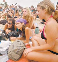 Son miles de fieles cuya religión tiene apenas tres mandamientos: “playa, un toque de birra y mucho rock and roll”, según define Javier, con su remera de Los Ramones que lo convierte en el sacerdote supremo de un contingente de “veinte descerebrados” que se vinieron en bondi desde Bernal. Poco importa si el buen tiempo acompaña o no. En el límite sur de las Playas del Sur, los paradores patrocinados por las radios Metro y Rock and Pop, cuentan con seguidores que están siempre merodeando la zona, a veces atraídos por los shows en vivo y gratuitos que se ofrecen, y otras simplemente para escuchar los programas a través de los bafles al aire libre que sacuden la arena tanto o más que el propio mar. Ayer, la atracción principal era la presentación de Catupecu Machu, que venía de ofrecer un primer show de verano en Pinamar, pero lo cierto es que con o sin show en vivo, la música y la onda joven de los dos paradores, congrega multitudes de chicos que creen encontrar por unas horas la porción de paraíso que les corresponde.