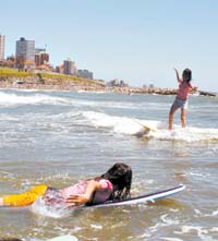 En Mar del Plata hay 35 escuelas de surf. Una docena es de primer nivel. Los más interesados en el aprendizaje son los chicos. Los padres los acompañan y terminan tomando clases.