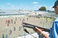 “Nosotros no, nosotros somos la policía”, responde un morochazo, con la casaca 13 de los rayados. El equipo de los polis precalienta en uno de los arcos. En todo partido de potrero juega el dueño de la pelota. En la 41 juega el jefe del penal, Giménez, con la casaca 5, a rayas. La idea del partido parece que corrió por cuenta de los presos, que un día se descolgaron con el pedido ante las autoridades. Ya se había producido un encuentro previo, a puertas cerradas, como en todo encuentro carcelario. Aquella vez, los de rojo habían ganado la parada 4 a 1. Y ahora llegaba la revancha.
