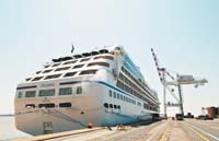 Es un hotel de lujo flotante, de seis pisos y 136 metros de eslora. Casi 700 pasajeros llegaron al puerto y recorrieron la ciudad, que se consolida así en el turismo homosexual.