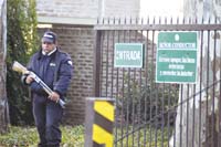 Por fuera, una garita sobre la vereda, a unos diez metros de la entrada, oficia de guardia externa. Ayer, cruzando Chubut, frente a la garita, había estacionado una camioneta de Federal Resguard, la empresa de seguridad privada encargada de controlar el acceso al club por el exterior. A unos pasos de la garita, un cartel verde con letras blancas advierte: “Sector bajo vigilancia electrónica permanente”.