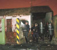Anoche la calle Colodrero, en el barrio Matera, de Merlo, seguía prometiendo violencia. A la altura del 550, frente a la casa de Cosme Damián Ortiz, de 54 años, de nacionalidad paraguaya, padre de un oficial de la Policía Bonaerense, los vecinos intentaban sostener el piquete y cada tanto reiteraban la estrategia: tirar piedras desde lo lejos, desafiando la custodia policial para vengar a los toscazos la muerte de Marcelo García, el vecino de 38 años que a la madrugada había sido fusilado de un escopetazo por el dueño de casa, en un episodio por lo menos confuso. “Por lo que dicen los testigos, esta persona se acercó a un grupo que estaba tomando cerveza y haciendo mucho ruido para pedirle que se callara –le contó anoche a Página/12 una fuente de la fiscalía que investiga el crimen–. Ellos lo habrían golpeado y él quedó enganchado entre la vereda y la entrada a la casa, y de adentro Ortiz Martínez le disparó.” El supuesto asesino está detenido, acusado del homicidio: “La autopsia indica que lo mataron con su escopeta”, le dijo el investigador a este diario.