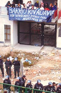Los diez o quince que llegaron a entrar durante la mañana de ayer se ubicaron en un balcón del primer piso desde donde descolgaron carteles. Uno de ellos decía “Barrio Rivadavia, por viviendas dignas para nuestros hijos, 3-7-06”. Otro medio centenar intentó seguirlos, pero la policía reaccionó y logró detener el intento. La custodia policial había sido instalada por el Juzgado 20, a partir de la ocupación ocurrida en julio pasado. Por la noche, se sumaron a la tensión los verdaderos adjudicatarios del complejo, vecinos de las villas 1-11-14 que cortaron la calle a una cuadra del lugar para reclamar la entrega de los departamentos.