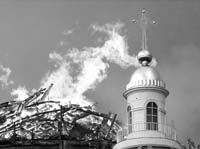 Con dos de sus cinco cúpulas en llamas, bomberos y gente que pasaba por la puerta de la catedral rusa ortodoxa, situada en el centro de San Petersburgo, ayudaban a sacar cuadros, alfombras, cortinas y objetos varios como podían. Otros bomberos apuntaban las mangueras cargadas de agua a la parte superior de la construcción, de unos 170 años de antigüedad, con la intención de agotar el fuego, que parecía ser cada vez mayor. Sin embargo, semejante esfuerzo no logró evitar la pérdida: el fuego consumió los soportes de dos de sus cúpulas, la principal y una de las contiguas, y se desplomaron en unos pocos minutos. El fuego comenzó en un conjunto de andamios que se había instalado para trabajar en la restauración de la desaparecida cúpula principal. A pesar de las fuertes lluvias que caían sobre la ciudad, no se consiguió finalmente frenar el avance de las llamas, que al menos se apiadaron de las tres cúpulas restantes. La catedral de tres naves situada en el centro de San Petersburgo se construyó entre 1828 y 1835, según el estilo clásico tardío.