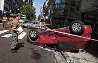 Cinco personas resultaron heridas ayer al chocar violentamente dos automóviles, uno de los cuales volcó, en el barrio de Recoleta. El conductor de uno de los vehículos es un subcomisario cuya identidad no se difundió. En el otro auto, que a raíz del impacto quedó sobre la vereda, iban tres mujeres que sufrieron heridas de diferente gravedad. Un peatón que pasaba en el momento del choque fue golpeado y está hospitalizado.