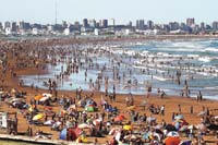 Gustavo, también marplatense, confirma que el turismo sirve para parar la olla. Cobra 20 pesos por cabeza para subirse 15 minutos sobre esas bananas de plástico que se internan en el mar, arrastradas por una lancha con motor fuera de borda y que casi siempre arrojan por la borda, en medio del mar, a sus ocho pasajeros “obligatorios”. Si la banana no se llena, el negocio no funciona. En la playa rige el todo vale, siempre que haya sol. Desde el puente del Torreón del Monje o desde el mirador de Waikiki, las postales están llenas de gente.