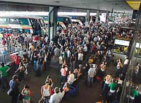 Los servicios de la terminal de ómnibus de Retiro estuvieron paralizados durante más de cuatro horas a raíz de un conflicto gremial en una empresa, que llevó a sus pasajeros a bloquear la salida y entrada de todos los micros, en reclamo de la concreción de sus viajes. La terminal fue bloqueada poco después de las 14 por pasajeros de la empresa Plusmar, luego de que por una medida gremial sus viajes fueron demorados sin explicaciones y los micros comenzaron a abandonar la terminal. El conflicto se inició porque en la asamblea de los trabajadores de esa empresa, dos choferes resultaron heridos en un presunto enfrentamiento. Por eso, los choferes decidieron parar y comenzaron a llevar los micros al galpón de la empresa. A las 17, las plataformas estaban atiborradas de gente a la espera de una respuesta, los pasajeros reclamaban sus viajes o el dinero a cambio en la ventanilla de Plusmar, mientras otros bloqueaban la salida y entrada de unidades, y la calle, siempre repleta de vehículos, estaba casi vacía con un solo ómnibus.