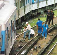 Otra vez el pánico se apoderó de los pasajeros de la línea Sarmiento, esta vez en el barrio de Almagro, a la altura de la calle Sánchez de Bustamante. Ayer por la tarde, la formación que acababa de salir de Once rumbo a Moreno se detuvo en forma brusca, lo que provocó que saliera humo de uno de los vagones. Tres personas resultaron hospitalizadas por heridas provocadas al bajar de los vagones rumbo a la estación Once. Otras personas recibieron asistencia por crisis de nervios. Desde Trenes de Buenos Aires (TBA) negaron que se hubiera tratado de un descarrilamiento sino que atribuyeron el accidente a la acción de un presunto “inadaptado” que habría accionado el freno de emergencia, lo que originó la detención brusca del convoy.
