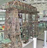 La estructura de hierro oscuro contrasta con el aspecto de modernidad, de paredes blancas y grandes publicidades colgantes, que tiene el Aeropuerto de Ezeiza. La oposición se destaca en ese concurrido ámbito y logra el objetivo: la obra, una maqueta de 2 metros y medio de alto del histórico puente trasbordador de La Boca, llama la atención de los pasajeros, argentinos y extranjeros, que enseguida recurren a la información que muestran las láminas. Así se cumple parte del propósito de la Fundación X La Boca, que la instaló ayer en el hall de Ezeiza, como primer paso de su propuesta para que el Estado recupere y ponga nuevamente en funcionamiento el puente, hoy abandonado.