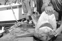 La empresa que organiza las excursiones, cuyo propietario es Sebastián Arbizu, tiene otro barco más pequeño, el Mako III, que el mismo día rumbeó para la zona de Mogotes, no muy lejos de la costa, a unos diez kilómetros, con el objeto de buscar tiburones. La pesca del tiburón es posible, en Mar del Plata, de octubre a mayo. Se pueden sacar ejemplares de varias especies de tiburón: bacota, cazón, escalandrúan, gato pardo y martillo. Los Arbizu siguen la huella de don Carmelo, abuelo de Sebastián, quien fue uno de los pescadores más reconocidos de la ciudad. Una vez de regreso en el puerto, personal especializado del Mako Teem realiza, como parte de una travesía que cuesta 300 pesos por persona, el fileteado y limpieza de los peces capturados. “Todo lo que se pesca, se come”, es la consigna de los que se hacen a la mar.