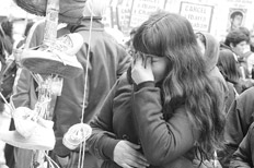 La abuela, que la noche anterior durante la vigilia había tenido un problema de salud, le decía a una señora: “No sé de dónde saqué la fuerza para tirar esa valla”. En el mismo lugar donde conversaron el guardia y el chico que no pudo entrar, dos madres, una afuera, otra adentro, se tomaban de la mano. “Me sacaron el único hijo que tenía. Vivió poco, brilló mucho. No puedo más. Quiero salir de acá, ¿cómo hago?”, preguntó. La otra trataba de calmarla. “Pediles que te saquen por otra puerta, no te preocupes, esto no termina acá, vamos a seguir luchando.”