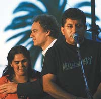 Un grupo de familiares de Cromañón se mostró el lunes en el acto de apoyo a Ibarra. Aseguran que son unos 40 padres. Aquí, Juan Carlos Santillán explica las razones de su postura.