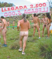 “De las autoridades sólo hemos tenido apoyo”, sostiene Suárez. El único problema se suscitó días antes del maratón, cuando “ciertos medios, en tren de generar polémica, fueron a buscar la opinión del cura párroco del lugar. Nosotros ya habíamos hablado con él y nos había dicho que no se iba a mostrar a favor ni en contra, pero cuando los medios fueron a tocarle la puerta y a exhibir la publicidad del evento junto a la iglesia, se molestó. Por eso al final el maratón fue dentro del campo y no en un camino, como iba a ser inicialmente. Pero fue un éxito. Hasta hubo corredores profesionales que por primera vez lo hacían desnudos”.