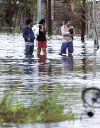 Santa Rosa de Lima tiene 35.000 habitantes, es uno de los barrios del oeste que se inundaron casi por completo. En la catástrofe del río Salado, en 2003, el agua sobrepasó los techos con cuatro, cinco o seis metros de altura. La lluvia de esta semana, con 400 milímetros en 48 horas, dejó dos metros de agua en los sitios más bajos. Las mujeres y los chicos se van, pero los hombres se quedan a cuidar sus casas por que de noche y sin luz –-la energía eléctrica está cortada en gran parte de la ciudad– comienza el saqueo.