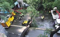 La lluvia se ensañó otra vez con la ciudad de Buenos Aires y el conurbano: en apenas unas horas, la tormenta con viento provocó anegamientos y la caída de árboles, como el que se ve en la foto, que aplastó a un taxi, en la avenida Entre Ríos, entre Alsina e Hipólito Yrigoyen. El temporal causó trastornos en el tránsito e inconvenientes en vuelos de Aerolíneas y Austral que, ante la imposibilidad de aterrizar en el Aeroparque Metropolitano, fueron derivados a Córdoba y Bahía Blanca. La tormenta comenzó alrededor de las 11 y se prolongó hasta las 13. Afectó en mayor medida los barrios Núñez, Belgrano y La Boca.