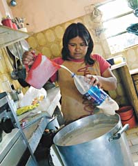Empiezan a desfilar mujeres, niñas y niños con botellas vacías de diferentes tamaños y colores. Isa y Ali, como le dicen todos a estas dos mujeres, saben indefectiblemente los nombres de cada uno, pese a la cantidad. Algunas madres –en su mayoría muy jóvenes– llenan el recipiente con la leche y se van, otras se quedan conversando un rato en el lugar. “Nosotras tenemos un registro de toda la gente que viene; son unas 540 personas por día, y casi siempre las mismas, pese a que no ponemos restricciones”, señala Isa.