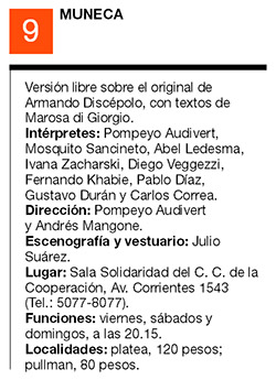 TEATRO › MUÑECA, DE ARMANDO DISCEPOLO, DIRIGIDA POR POMPEYO AUDIVERT Y ANDRES MANGONE