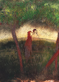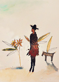 Gustavo López Armentía (Buenos Aires, 1949) leyó a Hernández en los años 70, cuando militaba en la izquierda peronista, como muchos de los que jóvenes en esa década crucial. “Me interesan las obras que tienen miradas simultáneas. Cuando leo sus poemas, también veo esa simultaneidad de historias. Estar cerca de Hernández es importante para mí. El amor, la guerra, la muerte, son temas fundamentales que también mezclo en muchas de mis obras. Me identifico con su poesía, siento que me llega de una manera especial”, revela este artista autodidacta que estudió arquitectura. “La figura de Hernández la hago desde mis dibujos. No hice una copia literal de su foto, sino que traté de hacer una recreación en donde me lo imagino muy cargado, con muchas cosas dando vuelta en su cabeza. De las fotos que conozco del poeta, dibujé la cabeza y parte del cuello. Trato de ubicar mi obra en diálogo con sus poemas. Los sentimientos que transmite en los poemas son muy oscuros por momentos, pero también hay mucha claridad respecto de sus ideas –explica López Armentía–. Si me corro un poco de Hernández, nadie tiene un color específico; tenemos ciclos y estados de ánimos que nos llevan a distintos colores. Yo no tengo una paleta estridente, tampoco uso el color de manera llamativa. Trato de que los lectores entren a través de mis dibujos y se involucren con la poesía”.