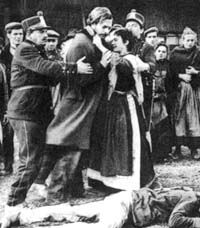Justo cuando el pueblo está por dividirse, entre aquellos que quieren levantarse ante tanta expoliación pero no saben cómo hacerlo y los que dudan antes de arriesgar lo poco que tienen, aparece el profesor Sinigaglia (Marcello Mastroianni). “¿Que paese é questo?”, pregunta al apearse del tren con el que viene escapando de los gendarmes de Génova. “¡Un paese di merda!”, le responde Domenico. Con infinita paciencia socialista, Sinigaglia va sugiriendo algunos caminos posibles para la insurrección: la mayoría son estrechos, precarios, peligrosos (empezando por una huelga por tiempo indeterminado), pero van dando una idea muy precisa de lo que fueron las primeras luchas por los derechos sociales en la Italia de la monarquía.