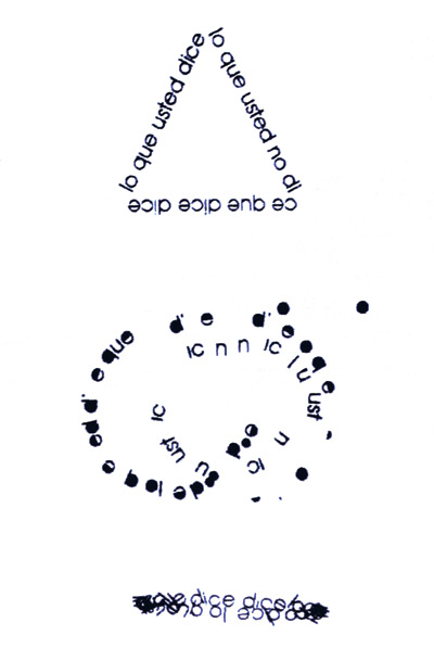 Mirtha Dermisache“Experimental” tiene una ventaja al respecto: como palabra asociada a poesía o arte cuenta con una historia de sentido en la cual “experimental” se opone a “tradicional” o “normal”. “Poesía experimental” fácilmente dice a cualquier lector que se trata de una práctica que intenta transitar caminos, si no nuevos, distintos a los que dicta la norma o la tradición dominante. En cuanto a las desventajas o reparos, el más importante a mi criterio es alejarlo de la noción científica de experimento, que va por caminos opuestos a los que pretende este tipo de poesía: el experimento científico es algo reproducible y que siempre va a dar los mismos resultados.
