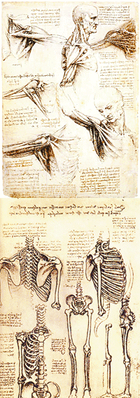 En ese tren es imposible no detenerse brevemente en la siguiente estación: Leonardo Da Vinci. Aunque no es mucho lo que puede agregarse a esta altura sobre Leonardo. También en esta materia dejó lo suyo, con trabajos basados, entre otras cosas, en algunas de las 30 disecciones de cuerpos de las que participó a lo largo de muchos años.