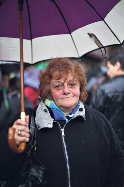 Soy separada, tengo hijos y nietos. Viajo dos horas a mi trabajo porque vivo en Hurlingham y trabajo hace treinta años en el mismo lugar. Nosotras tenemos más exigencias que los hombres, solo por ser mujeres, y también ganamos muchísimo menos: hoy en día un cadete hombre gana más que una secretaria, con la misma antigüedad. Vine a esta marcha porque lo que está pasando se está pasando de la raya. Las leyes no nos acogen, los gobernantes son indiferentes a nuestros reclamos, nadie nos protege, entonces tenemos que salir a la calle. Nunca interesó nuestro tema, bueno, ahora vamos a ver si les sigue sin interesar.