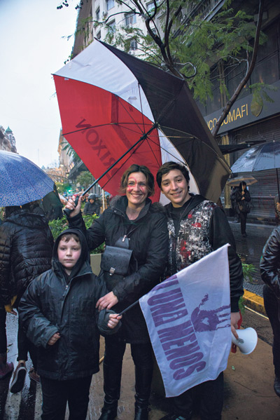 Vine con dos de mis hijos. Me siento orgullosa. Ellos no son hijos del patriarcado. Son resilientes de la violencia. Cuando los veo con un megáfono o tocando el bombo se me llena el corazón y el alma. Estar con ellos es producto de una lucha y hay que seguir luchando para que otros chicos sean liberados y que no haya mujeres en la bolsa, revinculaciones forzadas y reversiones de tenencia. Mis hijos vivieron una tortura y esperemos que la justicia no siga siendo sorda, ciega y muda.