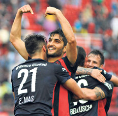 Belluschi abrió la cuenta a los 13 segundos de juego con un hermoso bombazo, y el goleador Blandi estiró la ventaja a los 26 minutos. En el segundo tiempo, los locales levantaron el pie del acelerador y los santafesinos descontaron con un tanto de Gudiño.