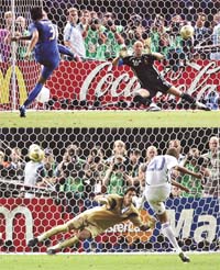 Como en el segundo tiempo no hubo accidentes –pudo haberlo en un cruce de Zambrotta a Malouda–, el desarrollo se tornó monótono, casi tedioso. Lo único que salvaba al partido era el envoltorio. En otro marco, con otro contexto, la escasa mentalidad ofensiva de Italia y la uña más ambiciosa de Francia hubiesen expulsado a los espectadores. En cambio, embargados por el magnetismo de la final, los 70 mil espectadores que llenaron el Estadio Olímpico de Berlín aullaban convencidos de que estaban viendo un partidazo.