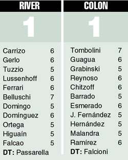 FúTBOL › RIVER NO PUDO VENCER A COLON, QUE LE EMPATO CASI SOBRE LA HORA