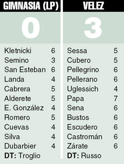 Quizá los jugadores de Gimnasia estaban más preocupados por lo que van a decirle hoy al fiscal Mauricio Romero, en la causa abierta por las amenazas que recibieron la semana pasada por parte de la barra brava, que en el partido mismo. Por eso a Vélez le resultó tan sencillo vencer al golpeado (y goleado) equipo platense.
