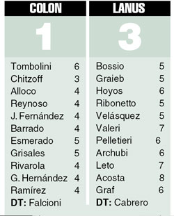 Lanús dominó a voluntad a Colón, un rival sumido en una profunda crisis futbolística, y lo venció como visitante. El triunfo comenzó a edificarse con un lindo gol de Acosta, luego de una combinación entre Valeri y Leto, y no corrió riesgos en ningún momento dada la superioridad que exhibió en todo aspecto el visitante. El ganador manejó la pelota en base al criterio de Valeri y Leto, y los delanteros Graf y Acosta se las arreglaron para ir contra el arco de Tombolini cada vez que se lo propusieron. El equipo granate logró su segundo gol en un buen contraataque definido con un potente remate de Graf. Leto selló el 3-0 y el gol del descuento llegó a través de un cabezazo de Esmerado.
