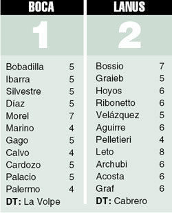 La Volpe sorprendió con la inclusión de Calvo (que hacía mucho que no jugaba) como lateral-volante, pero por lo demás pensó el encuentro como 15 días atrás contra Colón. Ausente Dátolo por lesión, parecía más lógica la inclusión de Ledesma por la derecha y Marino por el otro lado, pero el DT no confía demasiado en Ledesma y con Calvo se aseguraba la eventual línea de 5 en los ataques rivales. A diferencia del partido contra Colón (que el equipo tomó como una final), esta vez con el objetivo tan cerca, primero lo tomó como un trámite y luego enloqueció. Ganaba 1 a 0 con aquel penal de Pelletieri, pero no le encontraba la vuelta al juego a pesar de lo cual iba casi tozudamente al frente. Pudo liquidar el encuentro en el arranque del segundo tiempo, no lo pudo definir y para colmo de males Archubi coronó otro gran contraataque con un toquecito sutil contra un palo. En los 35 minutos restantes Boca fue impotente, impaciente e inoperante. La Volpe mandó a la cancha a Franzoia, Boselli y luego a Guillermo Barros Schelotto y con cinco delanteros abastecidos a pelotazo puro (un despropósito táctico) Lanús aguantó tranquilo. Y mientras los jugadores se cerraban los espacios entre sí, los hinchas contribuían a la confusión general con los murmullos hirientes cada vez que los jóvenes perdían la pelota y con un aliento tibio que se parecía a un prematuro desencanto. Si Palacio define como lo hizo ayer, si Palermo no la toca como ayer, si Gago juega con el desorden del segundo tiempo, si Boca repite su actuación ante Lanús, Estudiantes podría empezar a celebrar por anticipado. Aunque está visto que a nadie le conviene festejar por adelantado.
