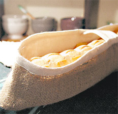 V. S.: –Son las azuma. Bolsitas japonesas que tienen esa construcción genial, que es un rectángulo dividido en tres partes cosido de modo tal que te queda esa hermosura. Azuma es un tipo de bolso o contenedor hecho en una sola pieza de tela, con el principio de plegado que se utiliza en el origami. Se usa en Japón para transportar sobre todo viandas (bentó) una ración de comida sencilla preparada para llevar, bastante común en la cocina japonesa. El bentobako es el cofre de madera laqueada que contiene los alimentos, tradicionalmente de madera laqueada, el cual se envuelve en la bolsa de tela (azuma). Otro de nuestros hits son los porta baguette en algodón y rafia, producto estrella. Gusta muchísimo por el formato y lo original. Sirven también para fruta. Tiene el tamaño ideal como centro de mesa. Los utensilios de madera intervenidos, las carpetas circulares tejidas en hilo de papel, los cuencos de tejido de punto y fieltro amasados en pura, suave y abrigada lana de nuestras ovejas del Norte, la cerámica negra cordobesa. La idea no es vender un objeto solamente, sino que la gente pueda recrear un estilo.