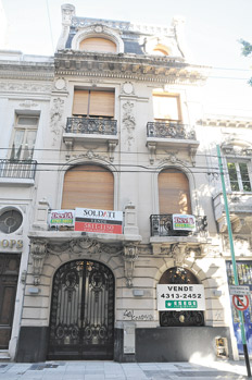 Argentores está vendiendo una de sus sedes, el impecable, bonito y coqueto petit hotel de la calle Montevideo 696. El edificio es una belleza de otros tiempos más elegantes, con una gran entrada de herrería de doble hoja, dos pisos airosos y, pasando una cornisa ornada, una mansarda de altura completa. La casa está firmada con orgullo por Eugenio Casterán y muy bien mantenida por sus dueños actuales. Las únicas penas son su fachada pintada y sus persianas de metal reemplazadas por cortinas de enrollar, pero en esta Buenos Aires limada y gastada no hay que esperar milagros. Como el edificio tiene una cautelar en firme porque es considerado “singular”, no se debe temer que termine demolido, al menos legalmente. Pero resulta que el bueno de Casterán le puso a esta residencia un detalle literalmente único, que no tiene par en la ciudad. Quien se acerque al lugar verá que cada hoja de la puerta de entrada y la noble herrería del ventanal de planta baja tiene como ornamento una máscara de bronce. Estas piezas recibieron, por su materialidad única, un tratamiento de privilegio en el libro Las máscaras de Buenos Aires, el catálogo publicado por el editor de este suplemento. Y la alarma es que el próximo dueño del petit hotel no sea tan respetuoso como Argentores de este detalle.