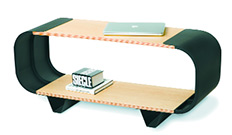 Entre los elegidos está una dupla que basa todos sus abordajes en la riqueza de la interdisciplina: la arquitecta Marcela Coppari y el diseñador industrial Agustín Barrionuevo, de En Bruto. Juntos presentan el banco Rolo de madera y metal conformado por tres partes que se encastran para armar y apilan al desarmarse. Y la biblioteca Latorna, un sistema de configuración abierto, también en madera (columnas torneadas de madera dura que se vinculan a piezas terminales que funcionan como cierre, fijación y encastre y estantes de placa fenólica con laminado plástico) que invitan al juego adaptándose a cada situación espacial o personal. Además crece agregándole kits (cada uno compuesto de 8 estantes, 24 columnas, 24 terminales y 36 pernos de encastre).