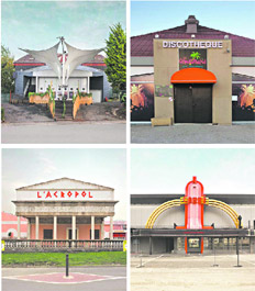 Pocos panoramas más anticlimáticos que las fachadas de discotecas durante el día. Desprovistas del resguardo nocturno o, para el caso, de las luces de neón, el sol desnuda facetas inesperadas, a menudo decadentistas y díscolas de los boliches. Con esa certeza entre ceja y ceja, el fotógrafo y director de arte parisino François Prost se dispuso a retratar ejemplares suburbanos en las afueras de Francia y Bélgica y, con más de una prueba bajo el brazo, armó una serie. Al resultado lo tituló Clubes y lo describió con la siguiente sentencia: “Sin la distracción de las multitudes y el destello de las luces de disco y los ojos borrosos, se ven tristes y empobrecidos. Se hace aparente cuán extraños y, en cierta forma, distópicos son algunos de los diseños”. Además, ofreció la nota personal: “Me recuerdan a mis años de juventud”, aseguró el nostálgico treintañero, que suspira entre joyas posmodernas donde artificiales palmeras amarillas, esfinges mal reproducidas y faraones son ley. Y así no hay justicia que valga.