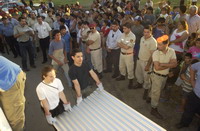 Los que aplauden al presidente Néstor Kirchner por sostener que "no vamos a reprimir a los hermanos de Gualeguaychú" a quienes les pide que "no corten el puente internacional", y piden a gritos que la Policía vaya a sacar "a esos delincuentes" de las calles de la ciudad.