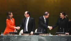 Hollande instó a los miembros de la Unión Europa (UE) a ratificar este año el acuerdo. "La Unión Europea debe dar el ejemplo", dijo. De su lado, el actor y militante Leonardo DiCaprio afirmó que "llegó la hora de un acción audaz y sin precedentes" para promover las energías renovables.